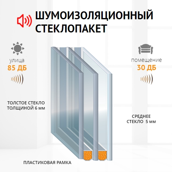 Нужно добиться максимальной защиты от уличного шума – не проблема: конструкция позволяет установить акустические стеклопакеты с наружным стеклом 6 мм или ассиметричными дистанционными рамками.