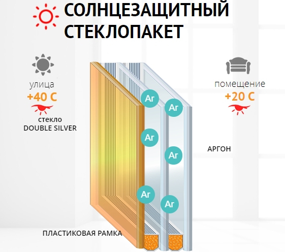 Отражение солнечной энергии до 58%, сбережение тепла выше, чем у обычного стеклопакета до 87%.